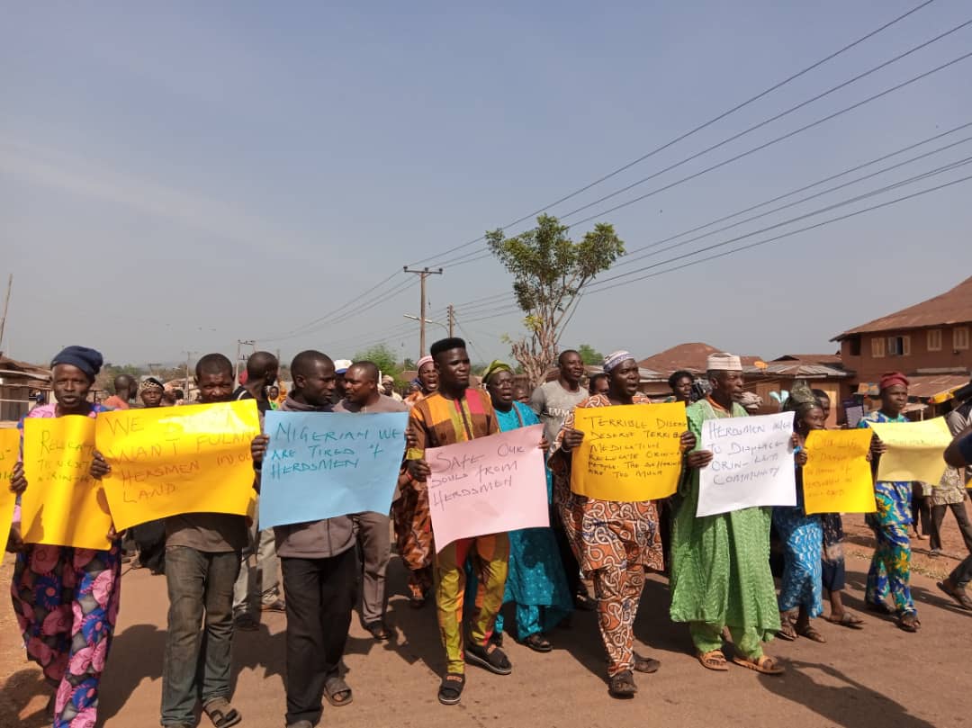 Their placards had inscriptions such as: “Save Our Lives, We are in danger in Orin Ekiti”; “Save Orin Ekiti from Herdsmen invasion”; “We Are Tired of molestation by Herdsmen”; “We Won’t Allow them Chase us from Our Land”, “Government Must Relocate Herdsmen”, among others.